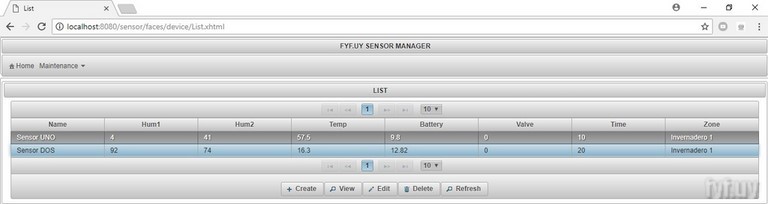 La aplicación accede a los dispositivos, usando Internet, y obtiene la información de humedad, temperatura, estado de batería. Estos dispositivos pueden instalarse, por ejemplo, en distintos invernaderos o, incluso, en establecimientos geográficamente distantes y son gestionados desde la misma aplicación.