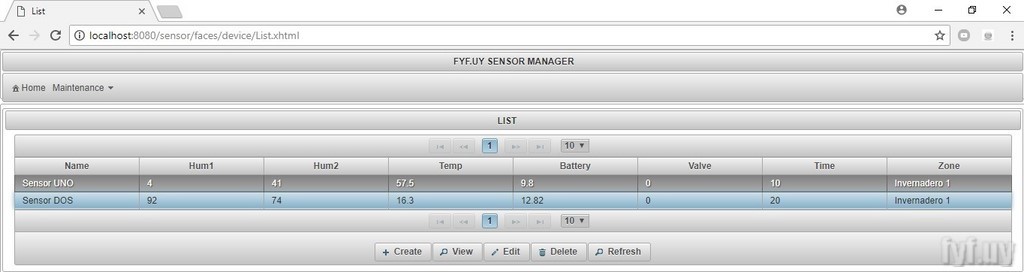 La aplicación accede a los dispositivos, usando Internet, y obtiene la información de humedad, temperatura, estado de batería. Estos dispositivos pueden instalarse, por ejemplo, en distintos invernaderos o, incluso, en establecimientos geográficamente distantes y son gestionados desde la misma aplicación.